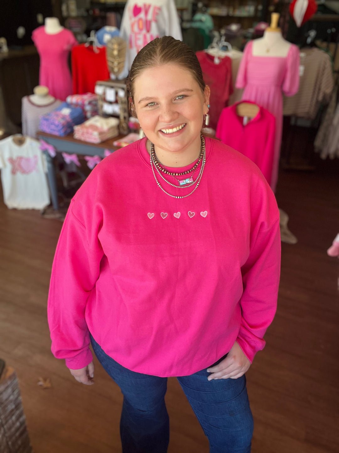 Most all of our shirts are made in house! You can pick your own shirt or sweatshirt, and you can pick your own design! The options are endless. We also have a lot of options ready to go in store to choose from!