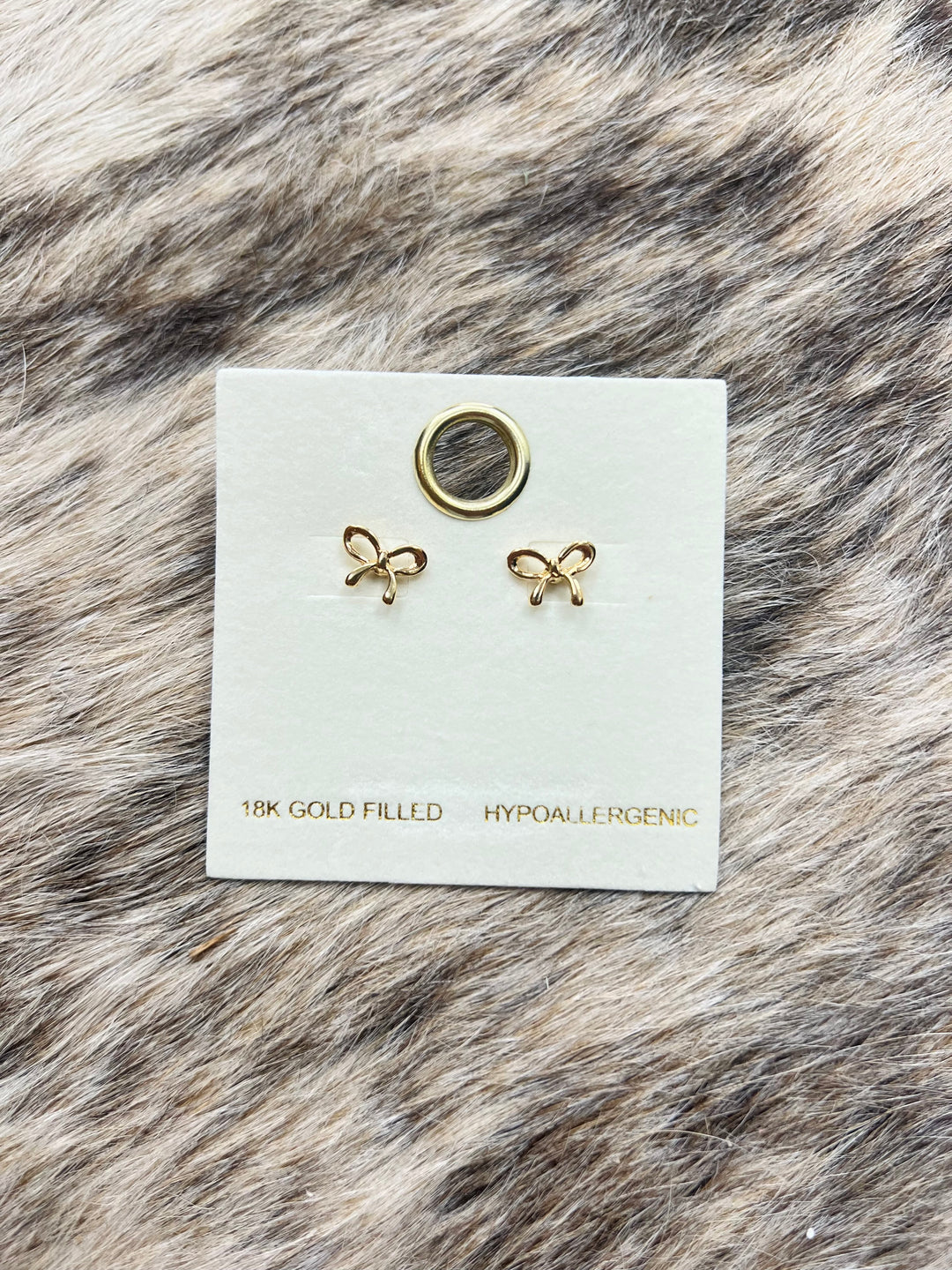 MINI PEARL BOW RIBBON GOLD EARRINGS | 80E5342