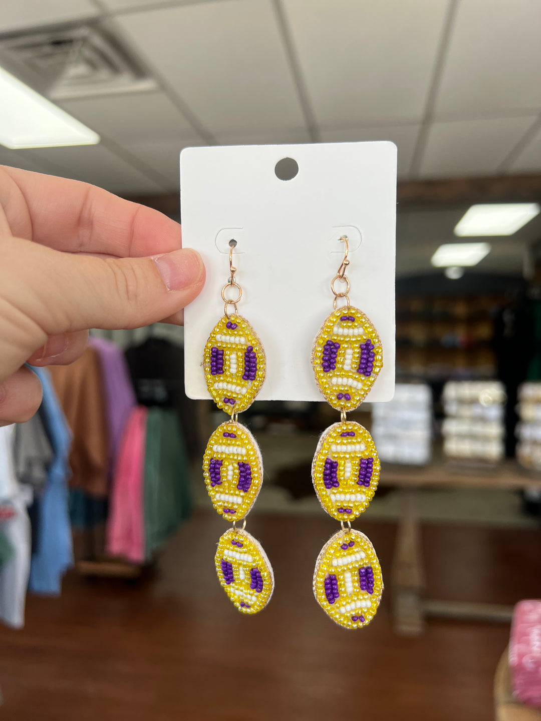 Seed Beaded Waterfall Football Earrings