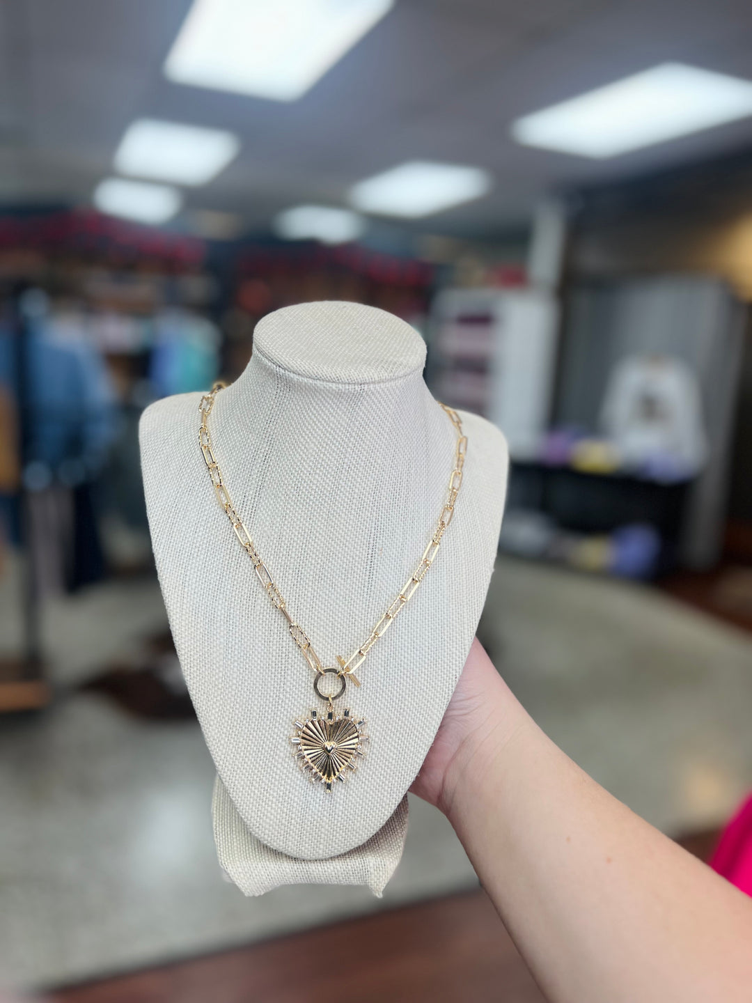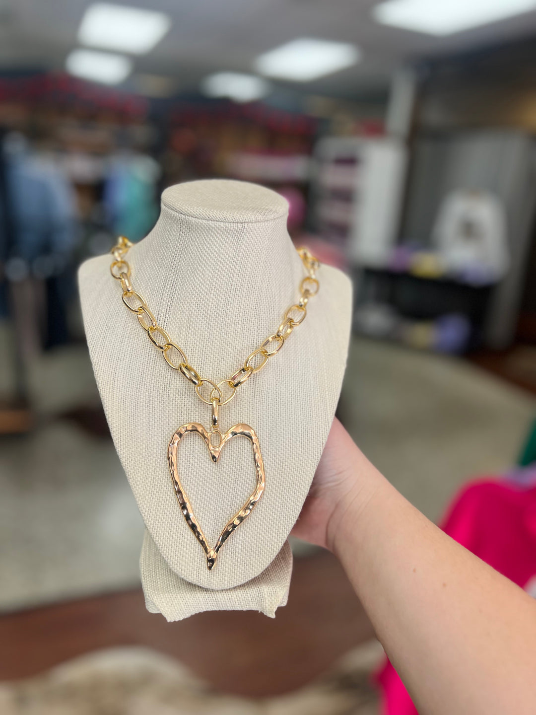 ETCHED HEART CHUNKY CHAIN STATEMENT NECKLACE