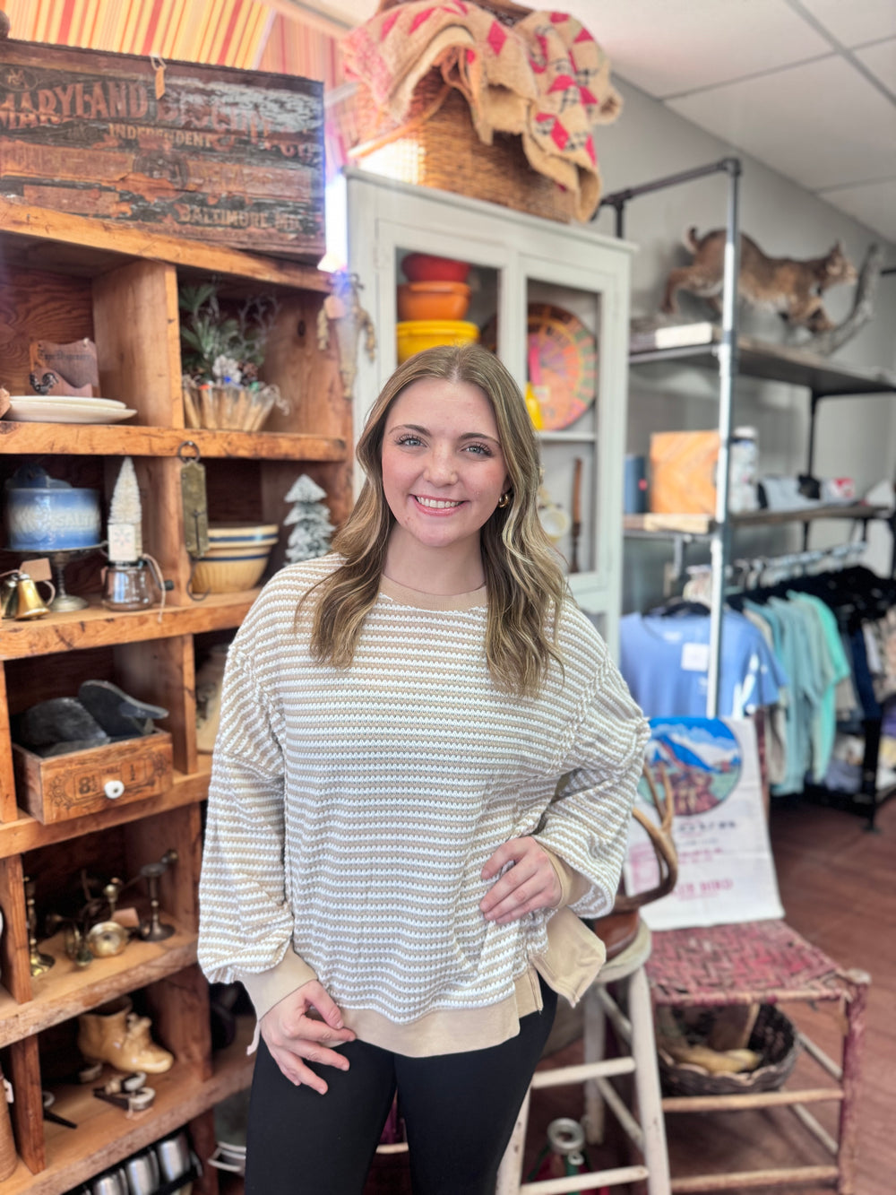 Stripe Ribbed Trim Long Sleeve Oversize Top
