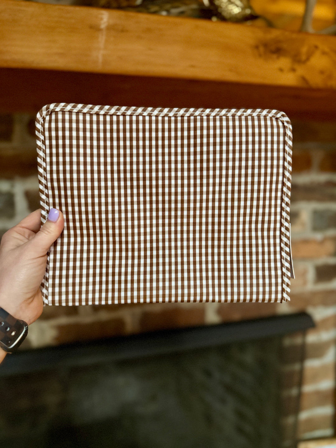 TRVL ROADIE LARGE ZIP POUCH - GINGHAM PEARL GREY