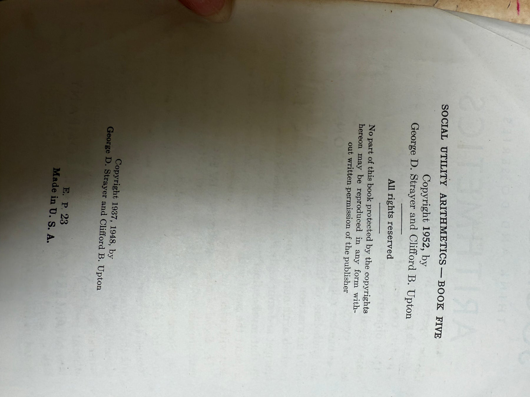 Social Utility Arithmetic stamped Juliette Jr High, Jones Co 1952