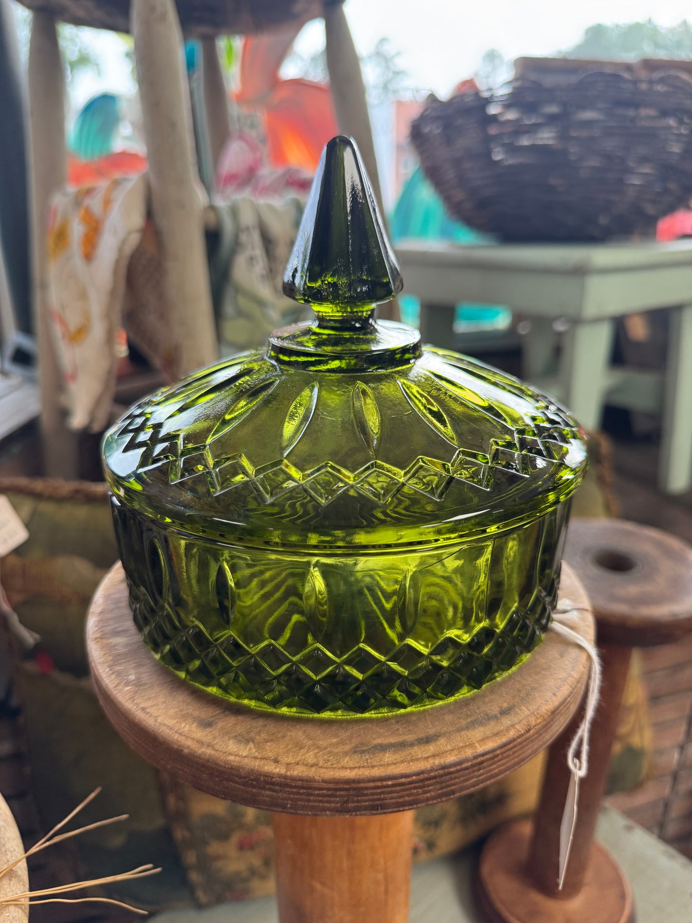 Vintage Avocado Green Glass Indiana Glass Candy Dish