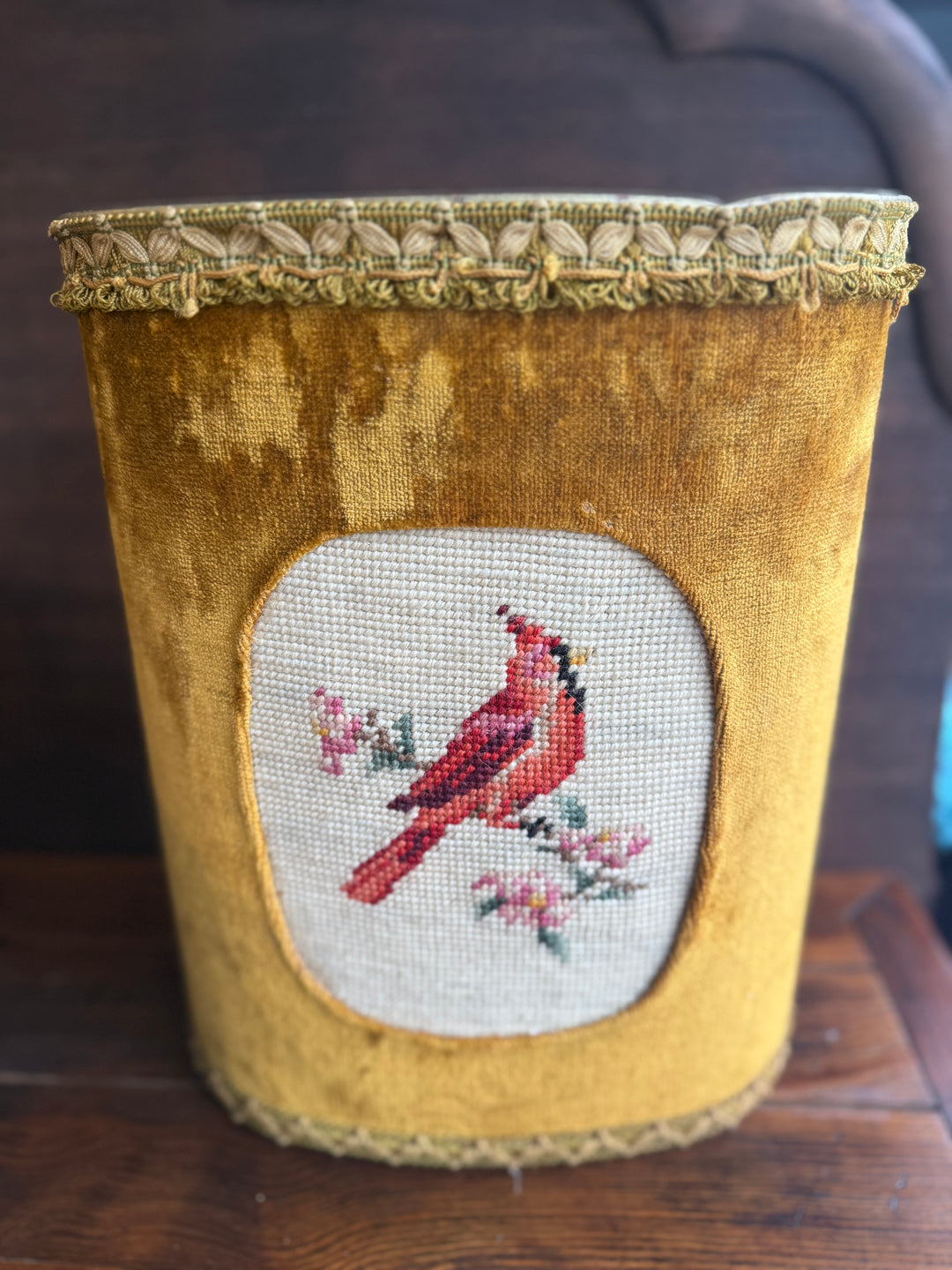 Vintage Cross Stitched Waste Basket