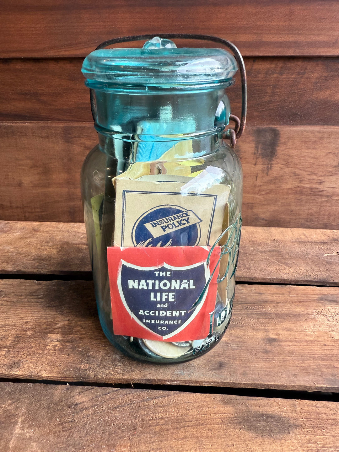 Blue Ball Jar with Vintage Sewing Items