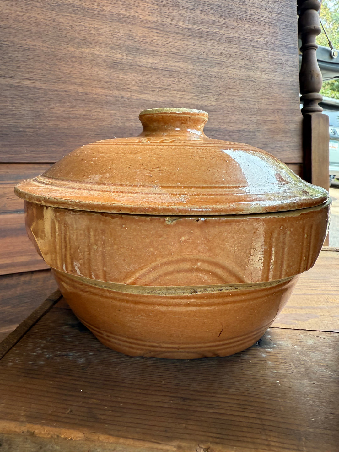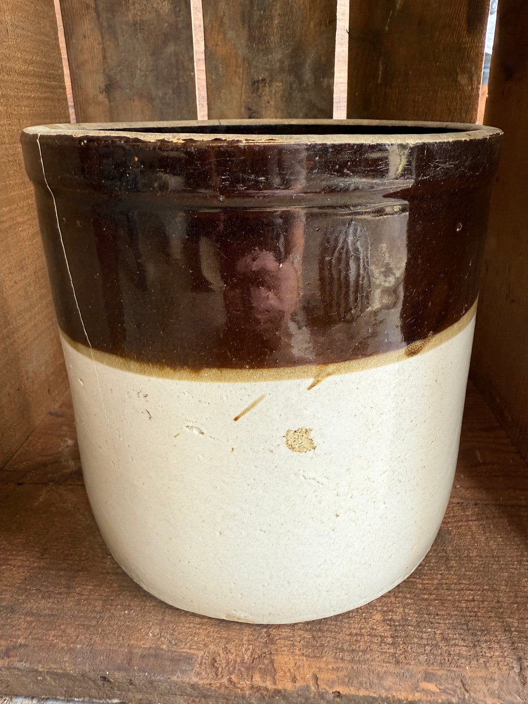Brown and Tan crock (hairline cracks)