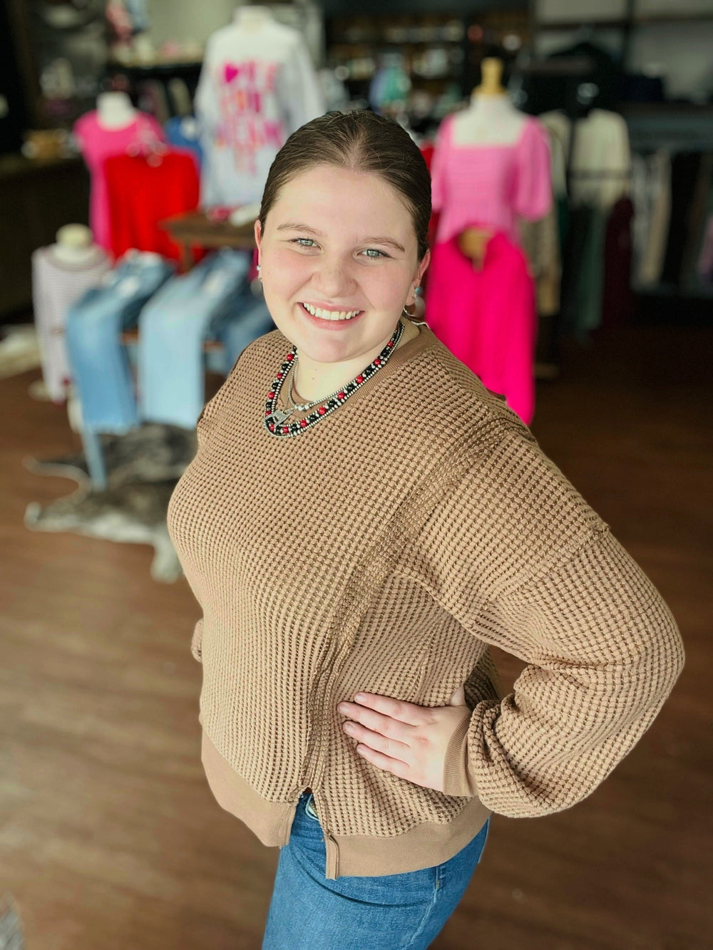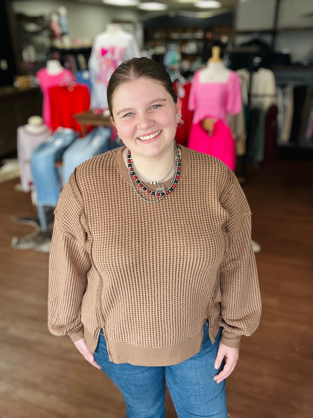 Oversized Waffle Knit Casual Top