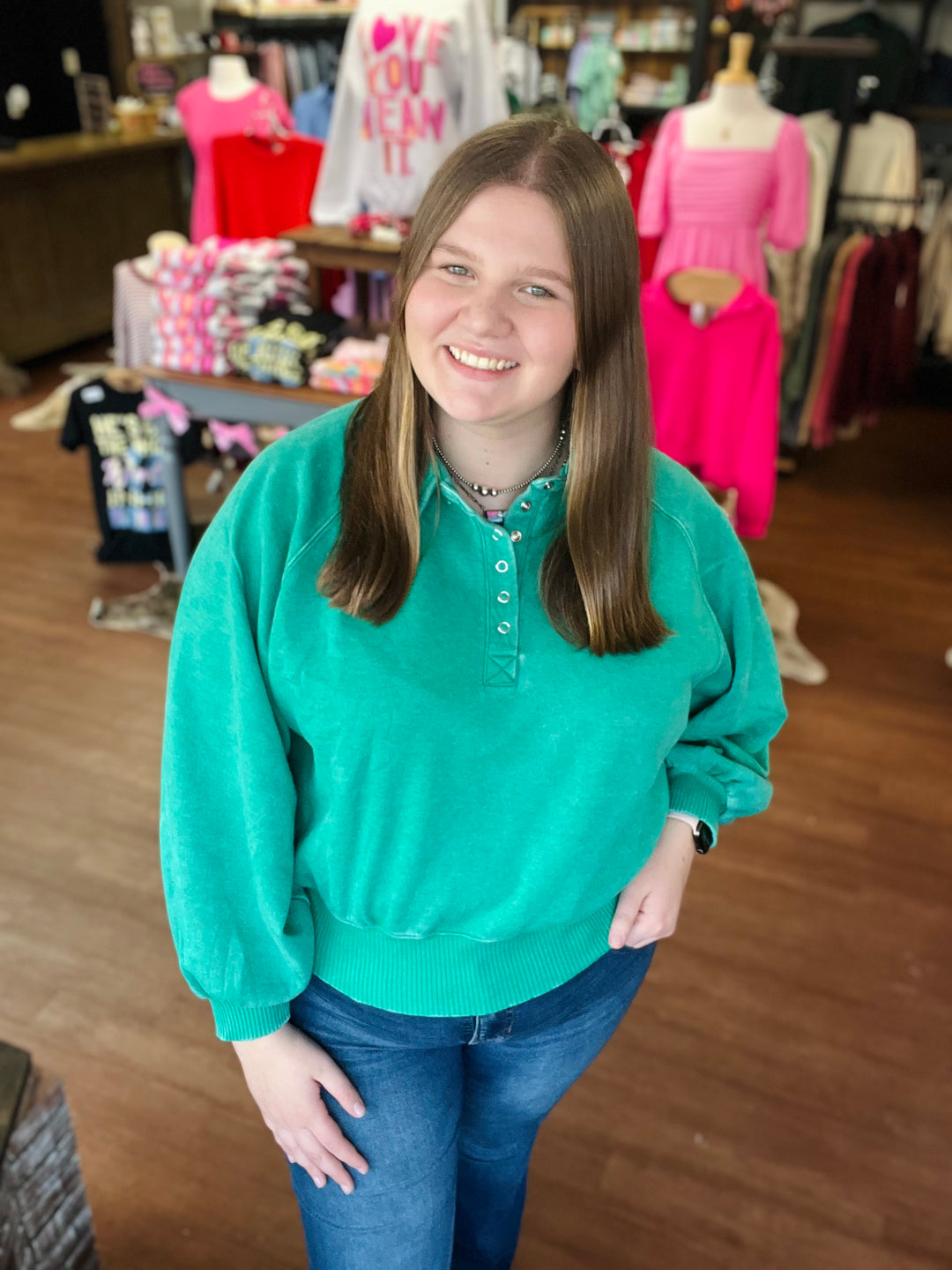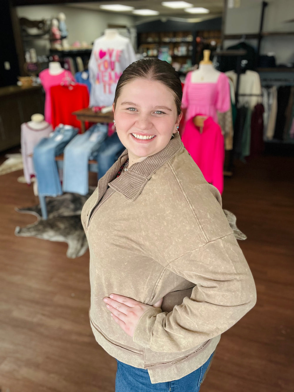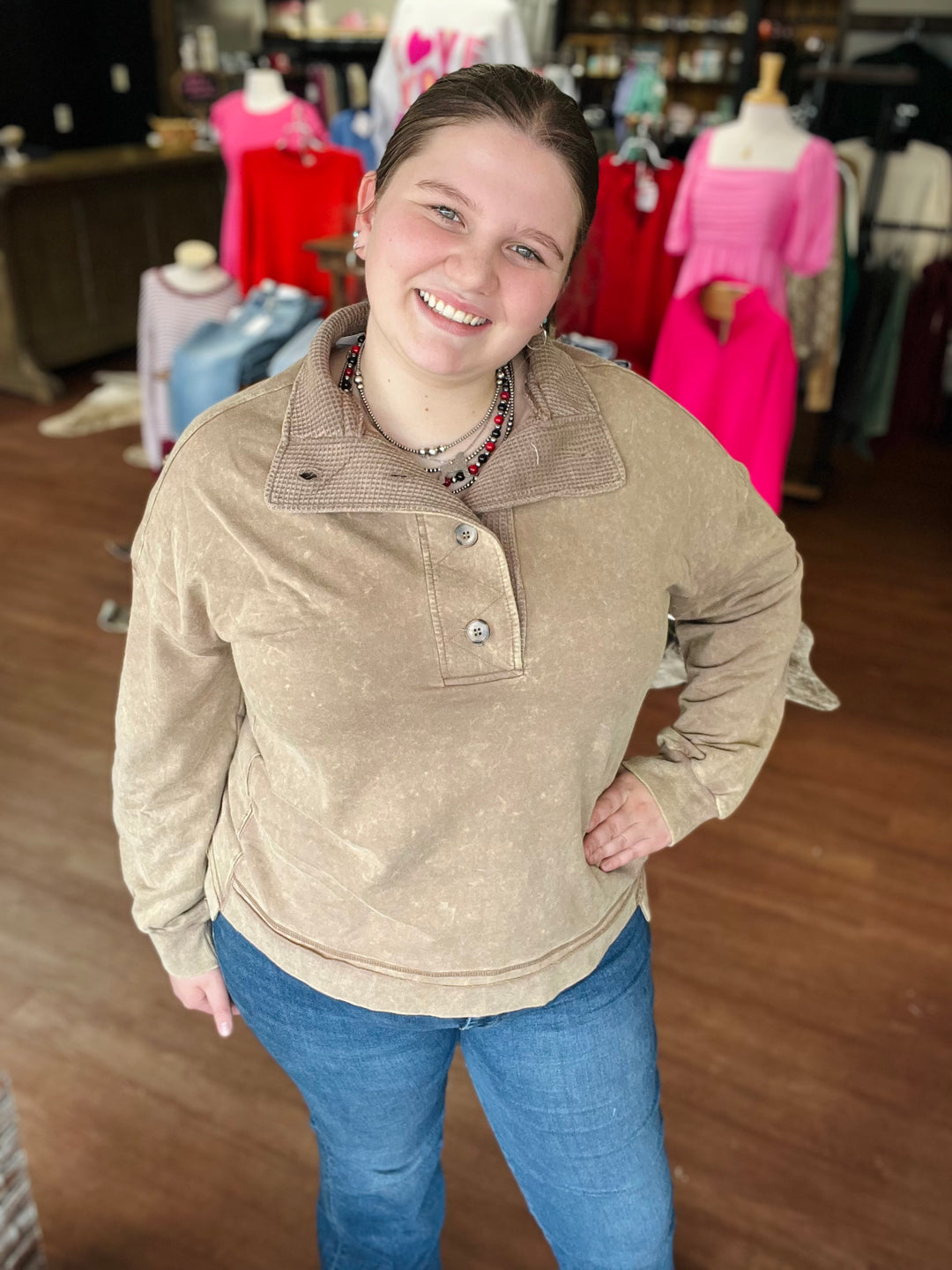 SNAP COLLARED MINERAL WASH SWEATSHIRT