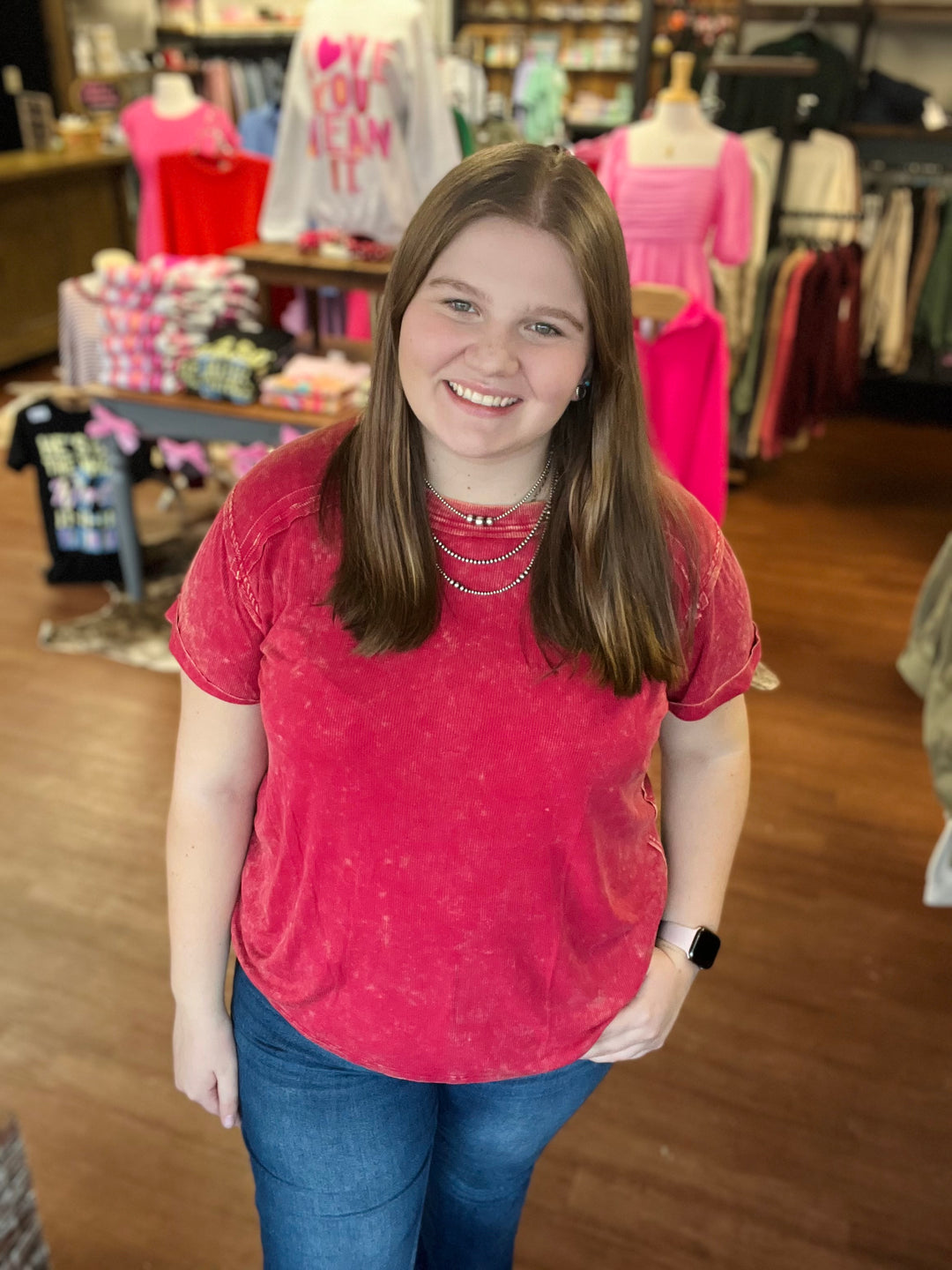 WASHED RIBBED SHORT SLEEVE BOAT-NECK TOP