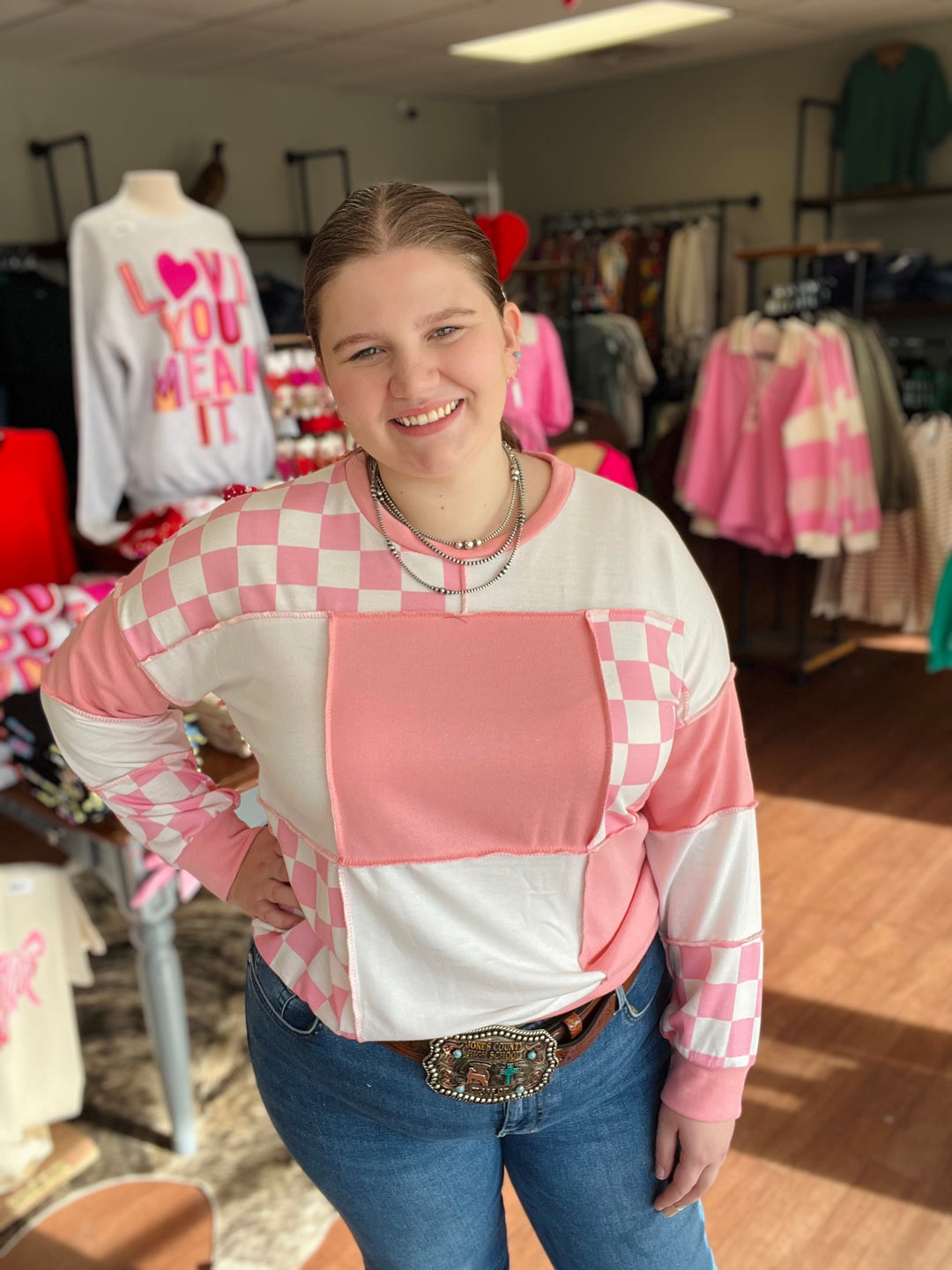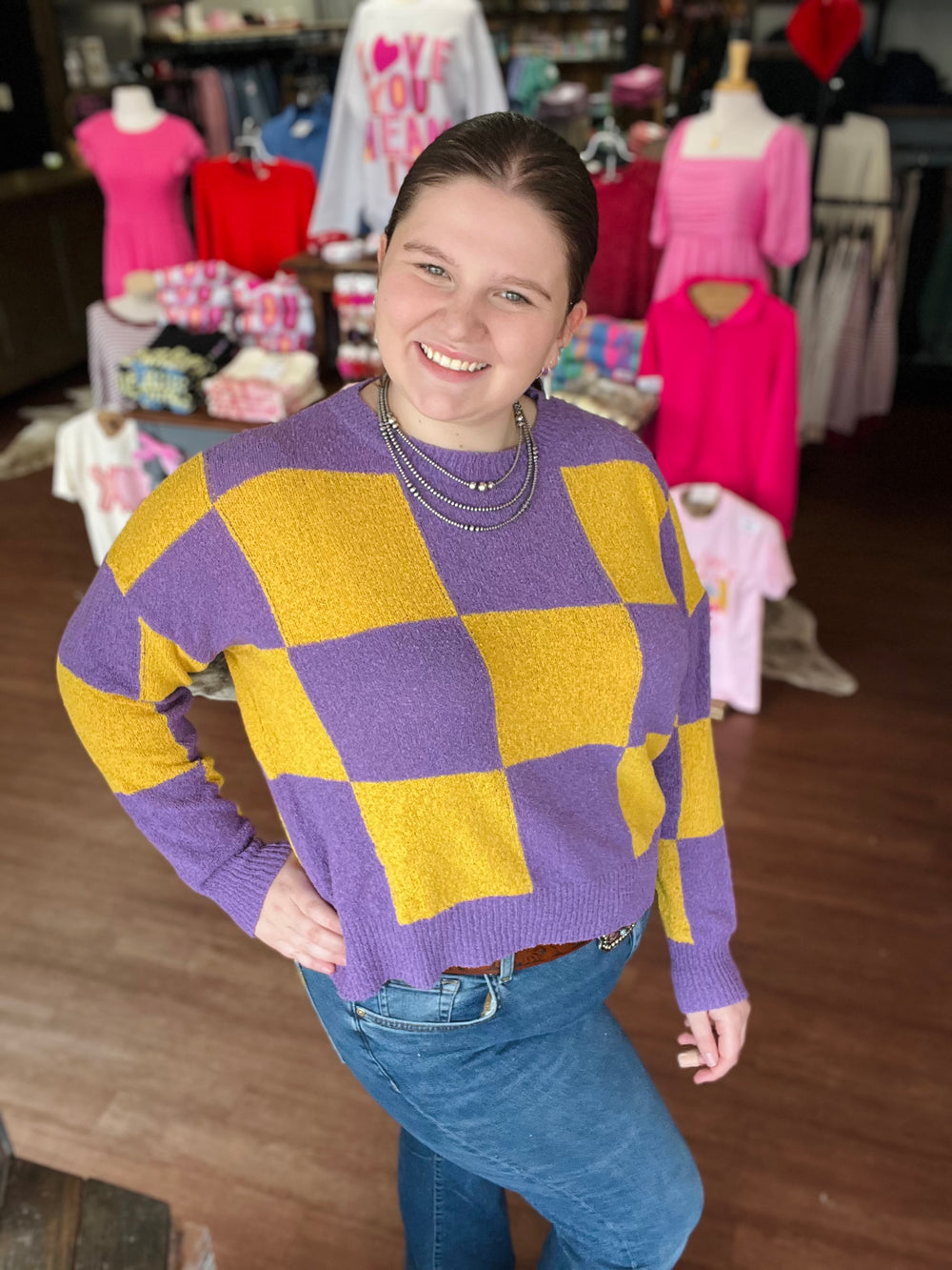 CHECKER SWEATER TOP
