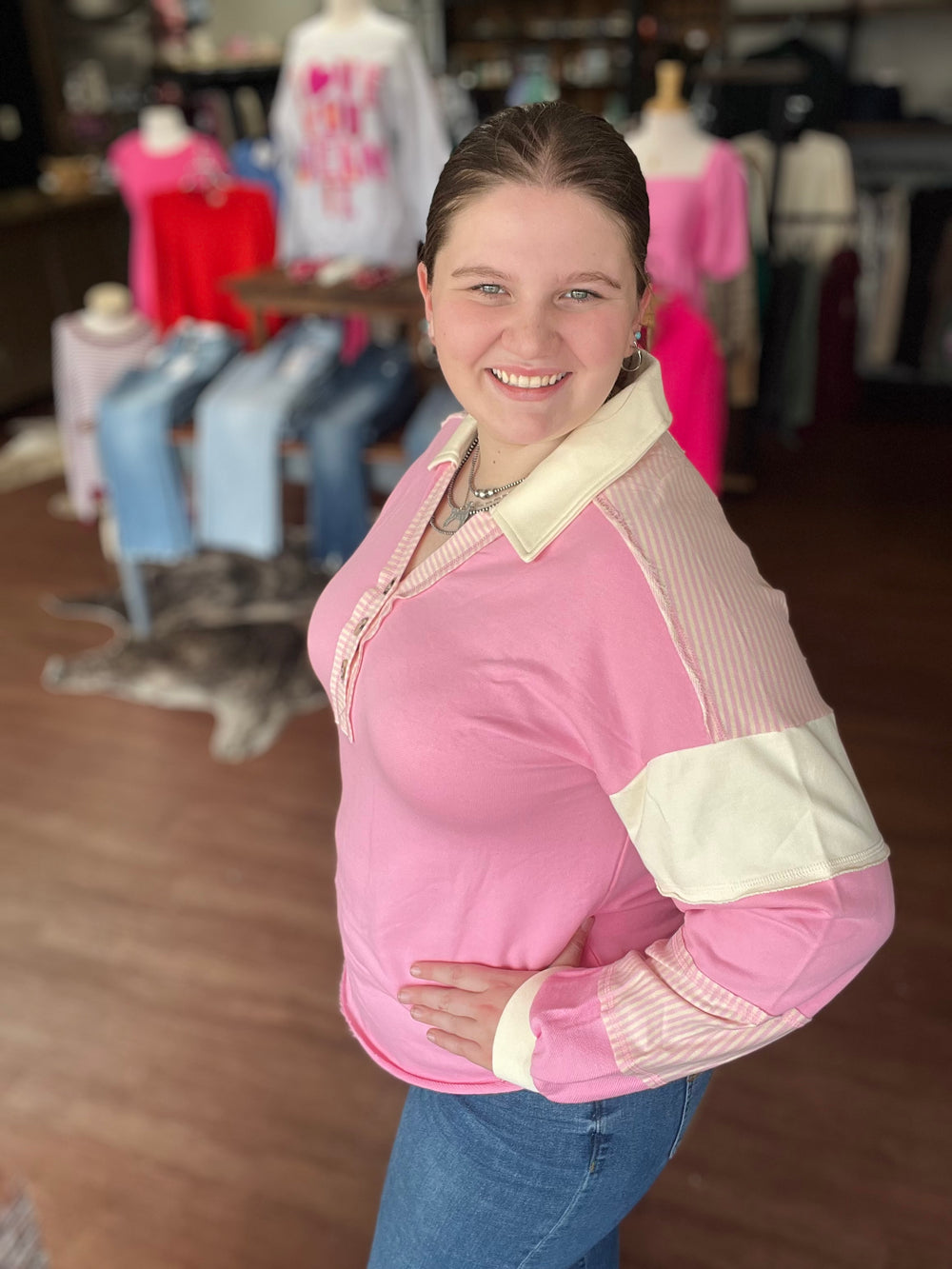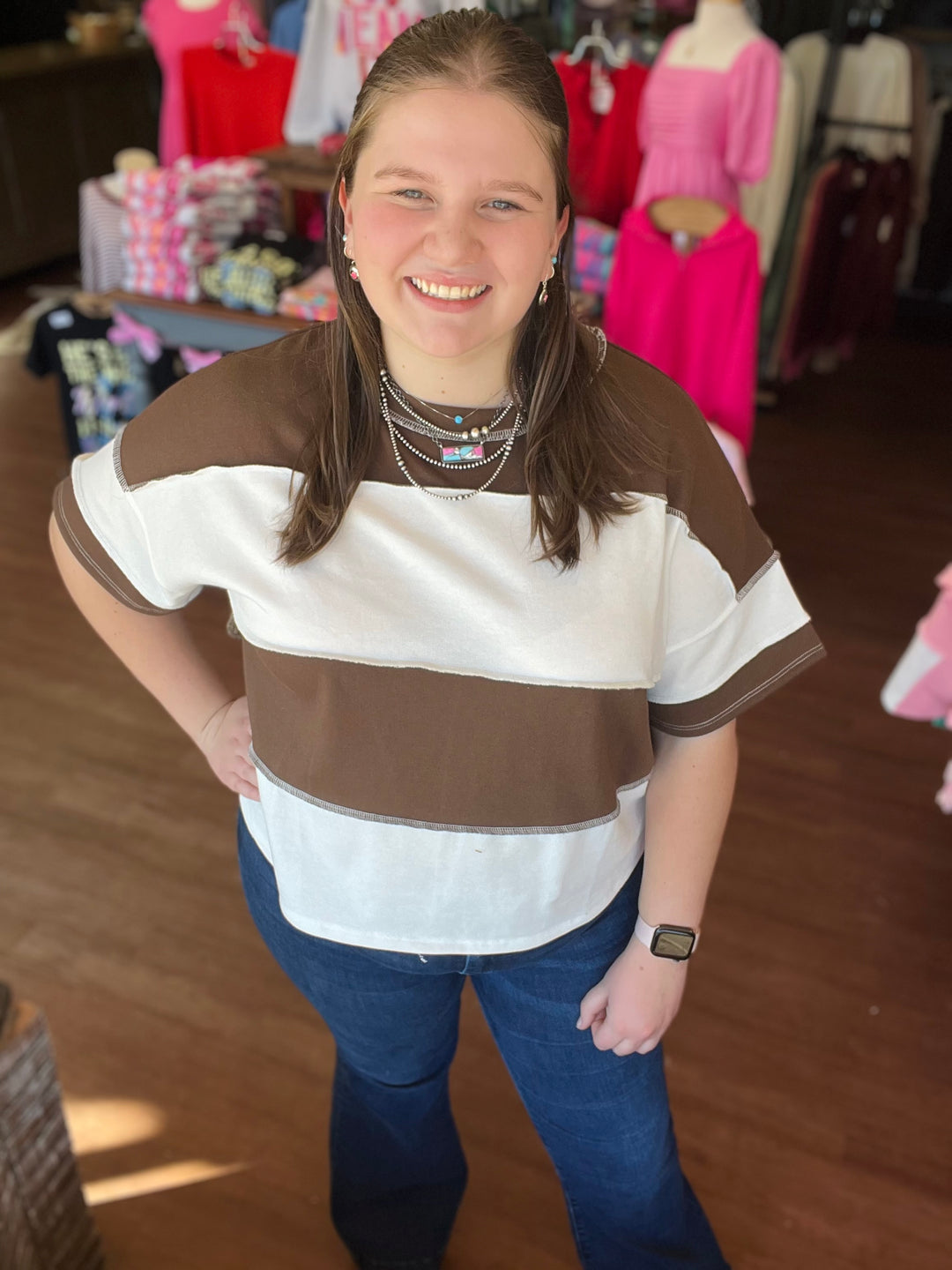 FRENCH TERRY COLOR BLOCK EXPOSED SEAM TOP