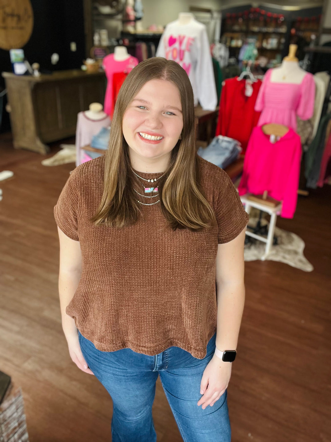 CHENILLE WAFFLE CAP SLEEVE SWEATER