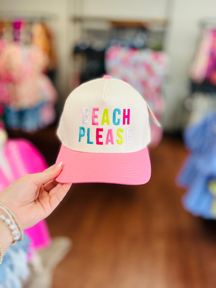 The BEACH PLEASE (Multicolored) Two-Toned Vintage Hat is all about bringing those beachy vibes to your everyday looks. With its eye-catching multicolored design and fun embroidered slogan, this cap is perfect for anyone who loves a little sunshine and sand between their toes. This hat is the ideal accessory for the spring and summer season—it’s trendy, playful, and totally irresistible! two-toned hats 5 panel structured fabric hats fabric backing (not mesh) snapback adjustable sizing 65% polyester, 35% cotton