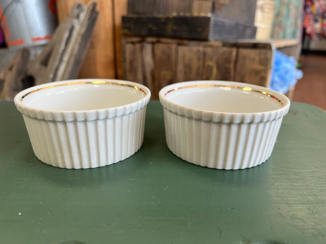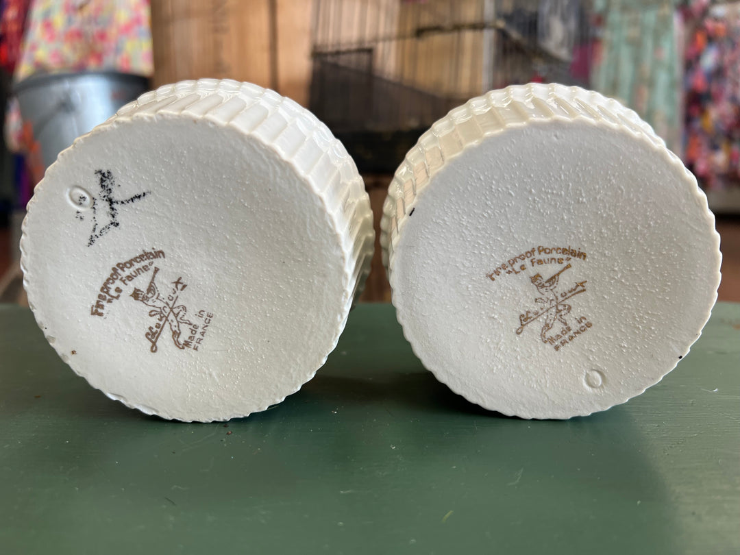 Vintage 2 Lourioux Le Faune Fireproof Porcelain Ramekins (set)